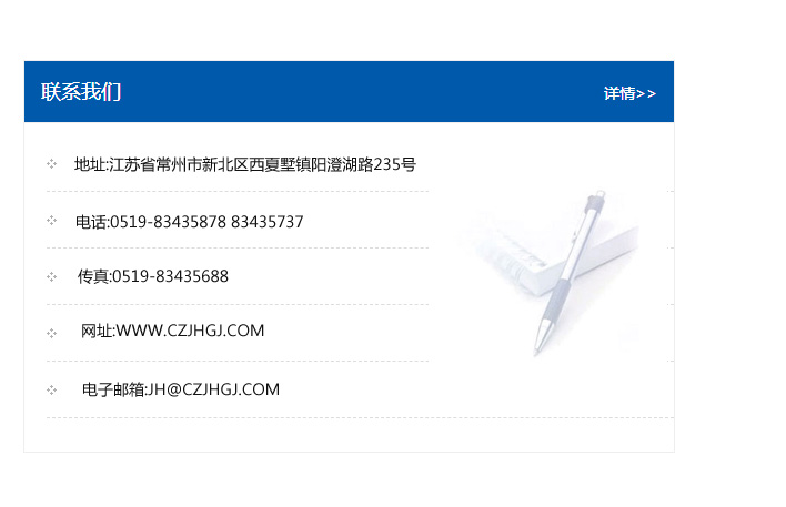 傳真:0519-83435688    郵編:213135    網址:WWW.czjhgj_com.tianhecolor.com    電子郵箱:JH@czjhgj_com.tianhecolor.com
